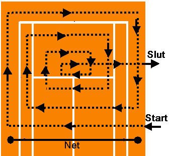 | Fejning af baner | Fej ALTID helt ud til hegnet, så ukrudt ikke får fat og så der ikke dannes algelag langs med hegnet. Fej i cirkler og slut i midten, så gruset fejes ind mod midten og ikke væk fra banen |